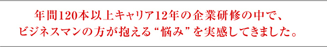 研修講師として、たくさんのビジネスマンの方々と接する中で、多くの方が、冒頭に書いたように“仕事が楽しめない”という悩みやストレス、ジレンマを抱えていることに気がつきました。